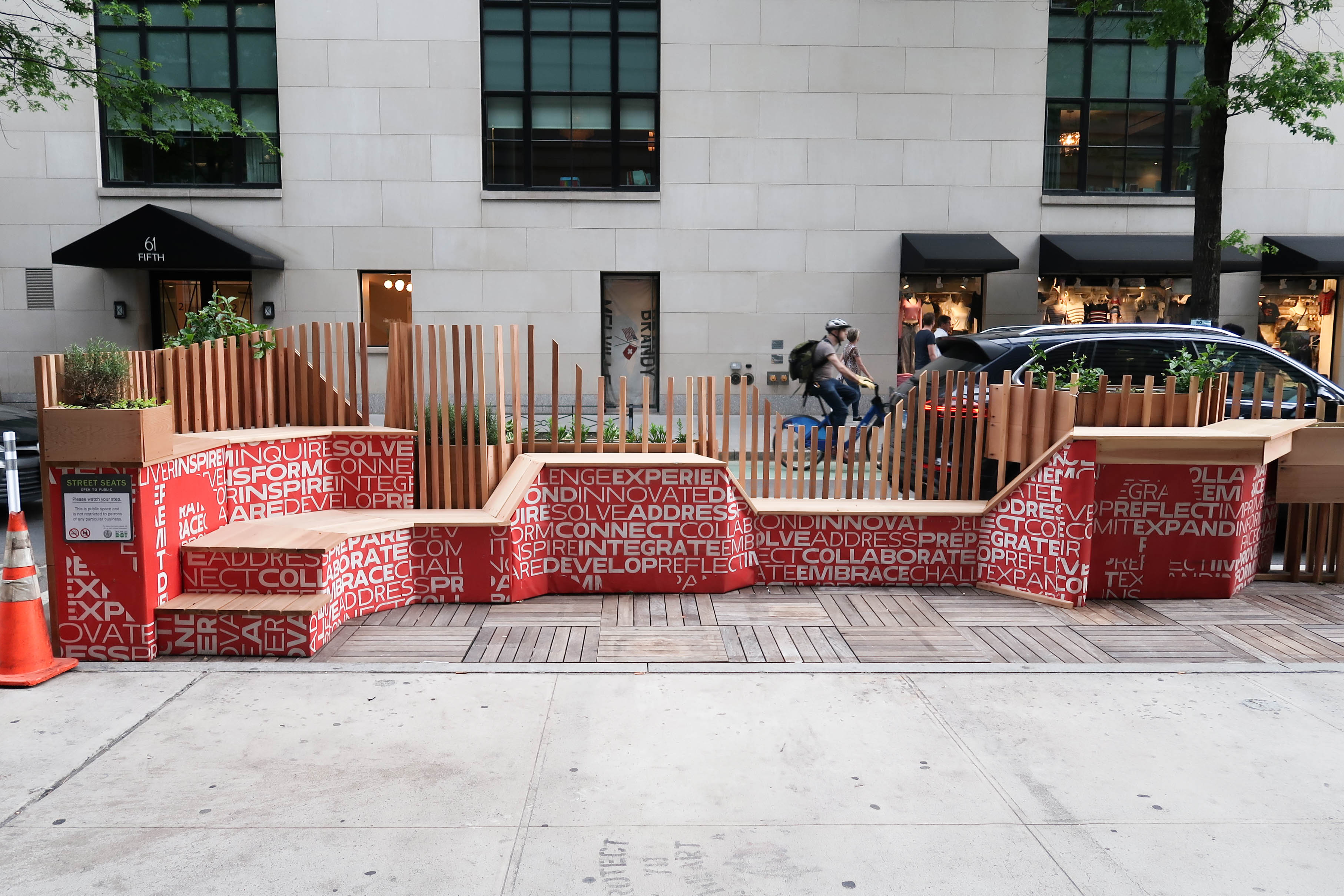 Walking among the busy streets of New York City daily, public spaces have become a safe haven, a place for socializing and taking breaks. Done in a span of a semester with 14 students right outside of Parsons university center, this public street seating emphasized fluidity in both function and visual qualities.