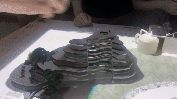 - Encourage thoughtful participation through voting on 2 key societal issues that is then visualized physically in the model, dynamically reflecting the collective choices and showing how shared decisions shape the envisioned society.